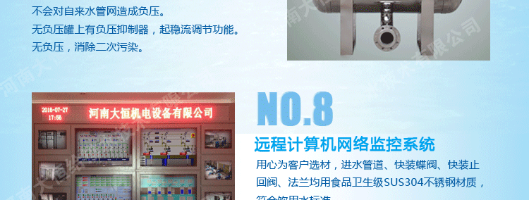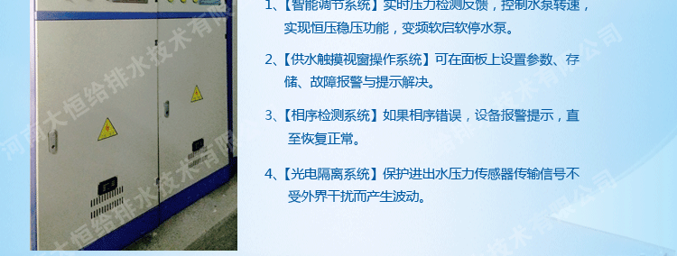 | 主營產(chǎn)品或服務(wù) | 生產(chǎn)、加工、銷售、安裝于一體的不銹鋼水箱生產(chǎn)廠家,主營產(chǎn)品:不銹鋼水箱、鍍鋅水箱、二次加壓供水設(shè)備、無負(fù)壓供水設(shè)備、紫外線消毒器、熱交換設(shè)備、低壓配電柜、除鐵除氟設(shè)備、臭氧發(fā)生器、消防增壓穩(wěn)壓設(shè)備、智能箱泵一體化設(shè)備、智能化水廠工程、遠(yuǎn)程計(jì)算機(jī)網(wǎng)絡(luò)監(jiān)控系統(tǒng)。 | ||