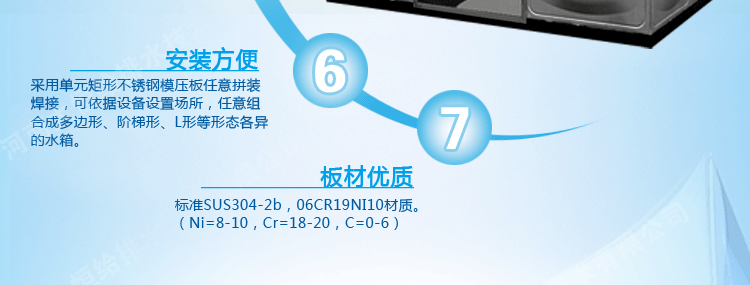 標準。不銹鋼水箱代替水泥水箱、鐵板水箱、玻璃鋼水箱是必然的趨勢,而且不銹鋼水箱衛生無毒、耐蝕性