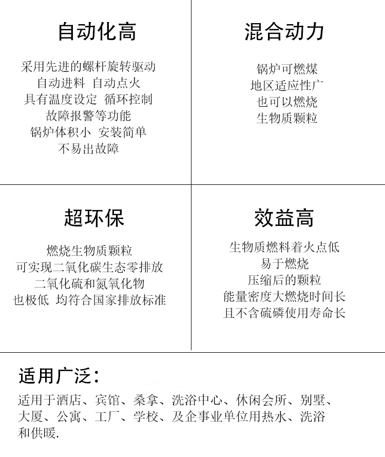 醫(yī)院,學(xué)校,紡織服裝行業(yè),大型超市,酒店賓館,食堂餐廳,食品飲料行業(yè),酒廠,制衣廠,印染廠,制藥廠,包裝廠,建材廠,涂料廠,飼料廠,塑料廠,橡膠,游泳館,洗浴中心,小區(qū)居民樓取暖,實(shí)驗(yàn)室,茶葉藥材烘干