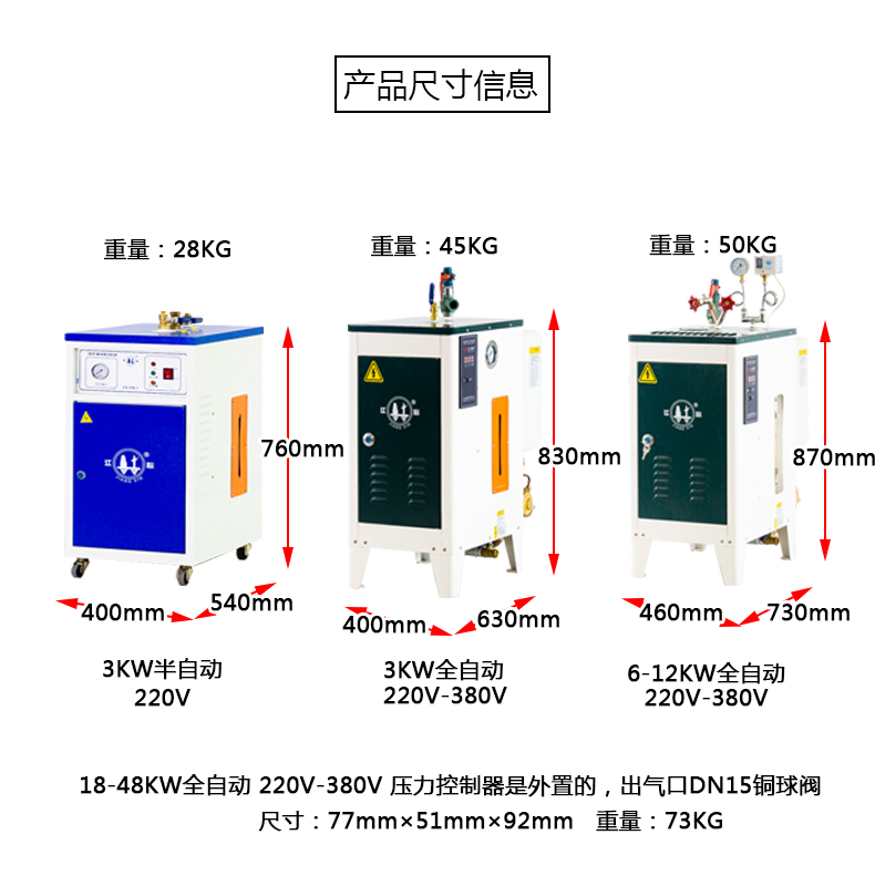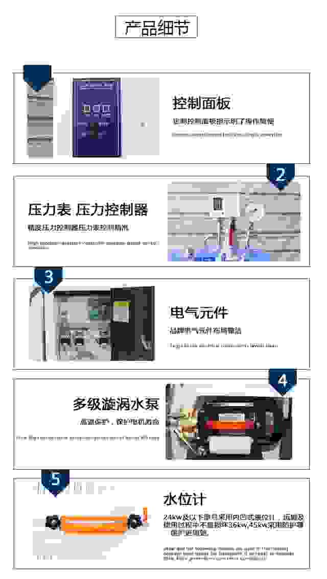 安全:自動(dòng)供水、發(fā)熱系統(tǒng)故障全自動(dòng)保護(hù),采用優(yōu)質(zhì)碳素鋼制造,經(jīng)過嚴(yán)格檢測(cè); 高效:產(chǎn)汽速度快,氣壓穩(wěn),節(jié)電節(jié)能; ??環(huán)保運(yùn)行:無(wú)噪音,無(wú)污染,熱效率高,鍋爐本體采用優(yōu)質(zhì)高效保溫材料,散熱損耗小,熱效率大于98%; 方便:體積小,安裝和移動(dòng)方便。整機(jī)質(zhì)保一年,終身免費(fèi)維修安全:自動(dòng)供水、發(fā)熱系統(tǒng)故障全自動(dòng)保護(hù),采用優(yōu)質(zhì)碳素鋼制造,經(jīng)過嚴(yán)格檢測(cè); 高效:產(chǎn)汽速度快,氣壓穩(wěn),節(jié)電節(jié)能; ??環(huán)保運(yùn)行:無(wú)噪音,無(wú)污染,熱效率高,鍋爐本體采用優(yōu)質(zhì)高效保溫材料,散熱損耗小,熱效率大于98%; 方便:體積小,安裝和移動(dòng)方便。整機(jī)質(zhì)保一年,終身免費(fèi)維修